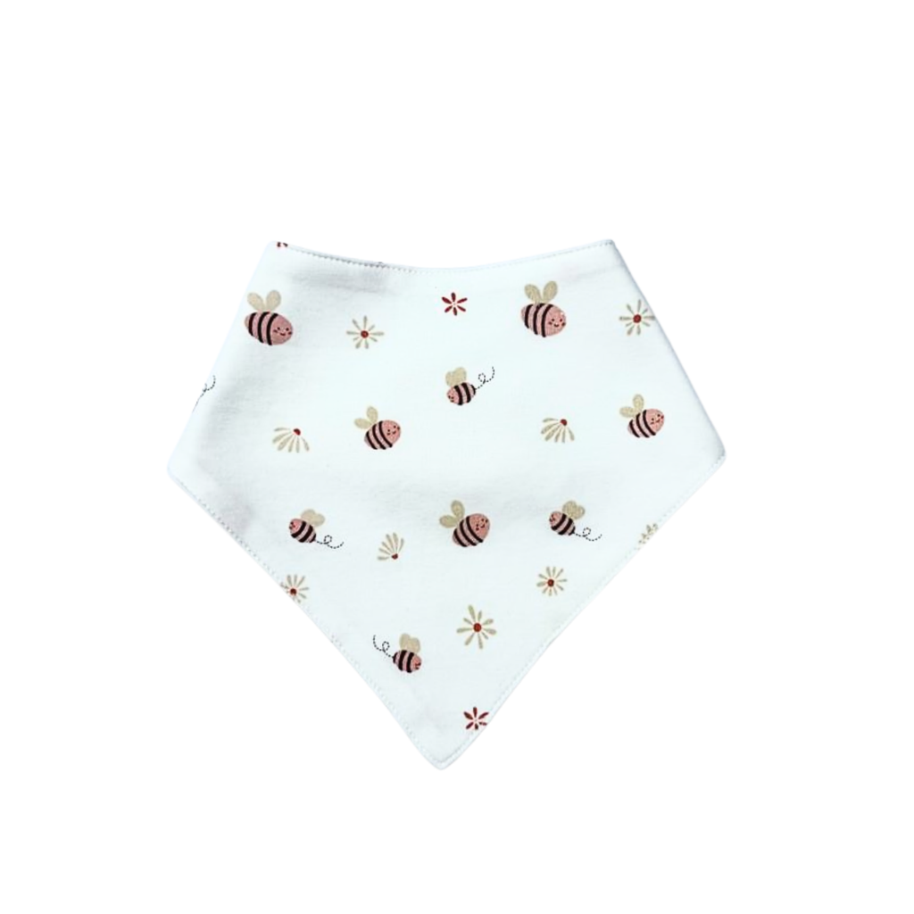 Babero tipo triangulo hecho en 100% algodón pima, para proteger el pecho del bebe. Lleva dos broches para poder regular el contorno de cuello.