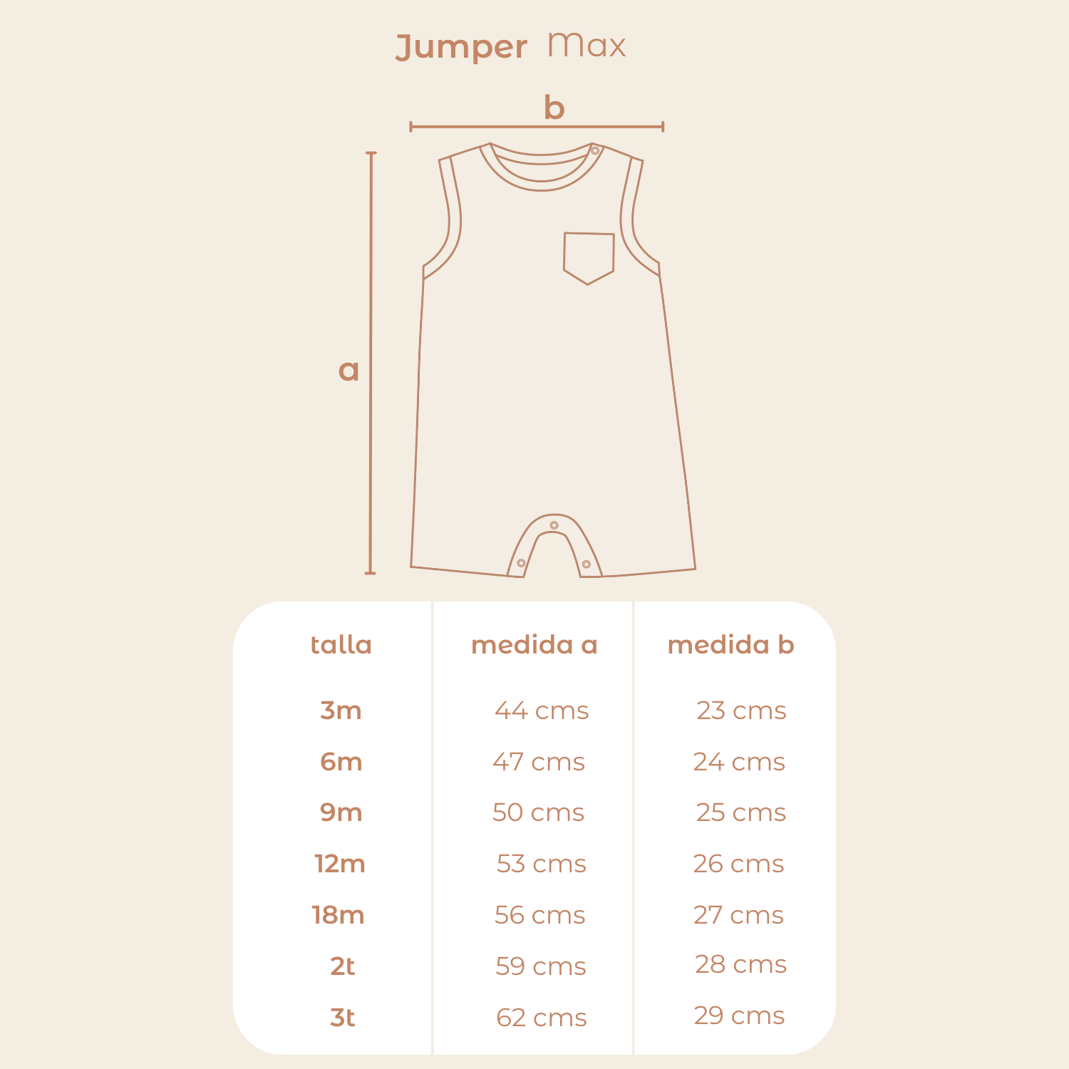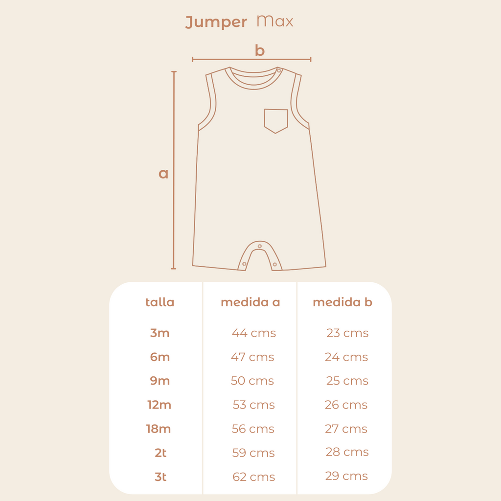 Jumper sin mangas con cuello redondo que se abrocha en lateral. Lleva broches para cambiar a tu bebe más fácilmente. Es ideal para los días de calor. Hecho en 100% Algodón Pima Peruano.