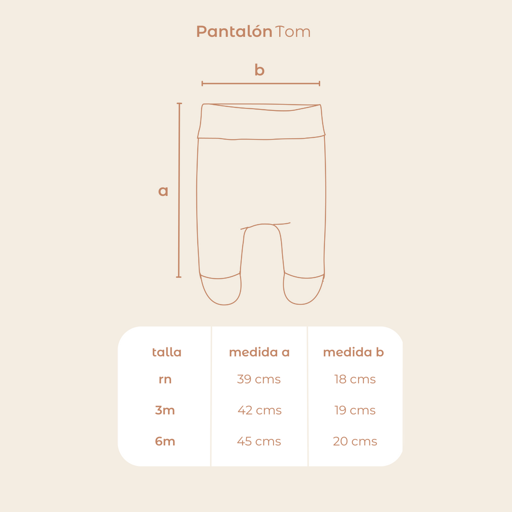 Pantalón con pie y pretina ancha. Se puede doblar o usar estirado. Perfecto para proteger la barriga del recién nacido. Hecho en 100% Algodón Pima Peruano.